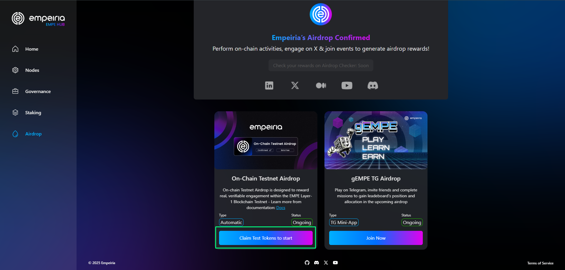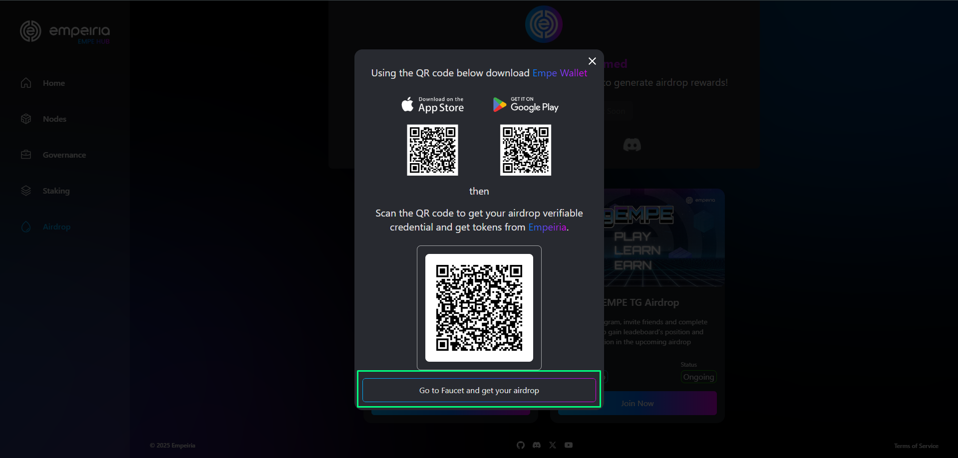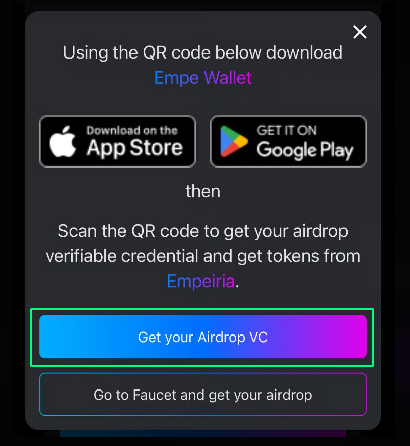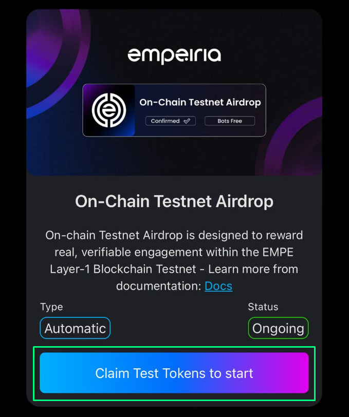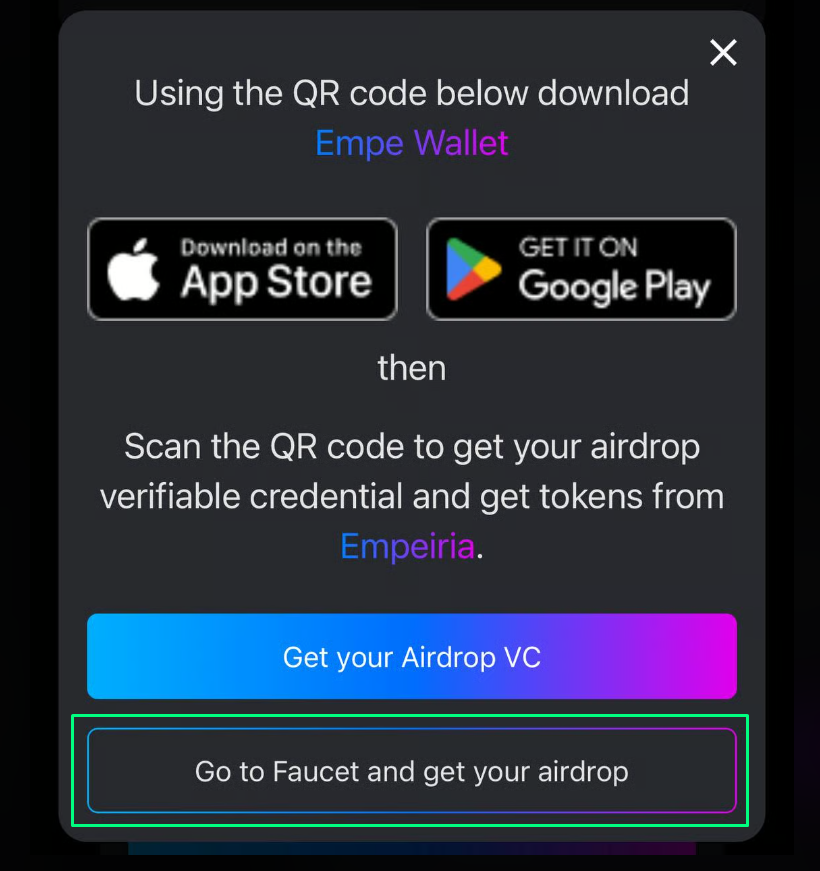 *Afrer completing the guide, Empe Testnet tokens will be automatically distributed to your Keplr / Leap wallet.